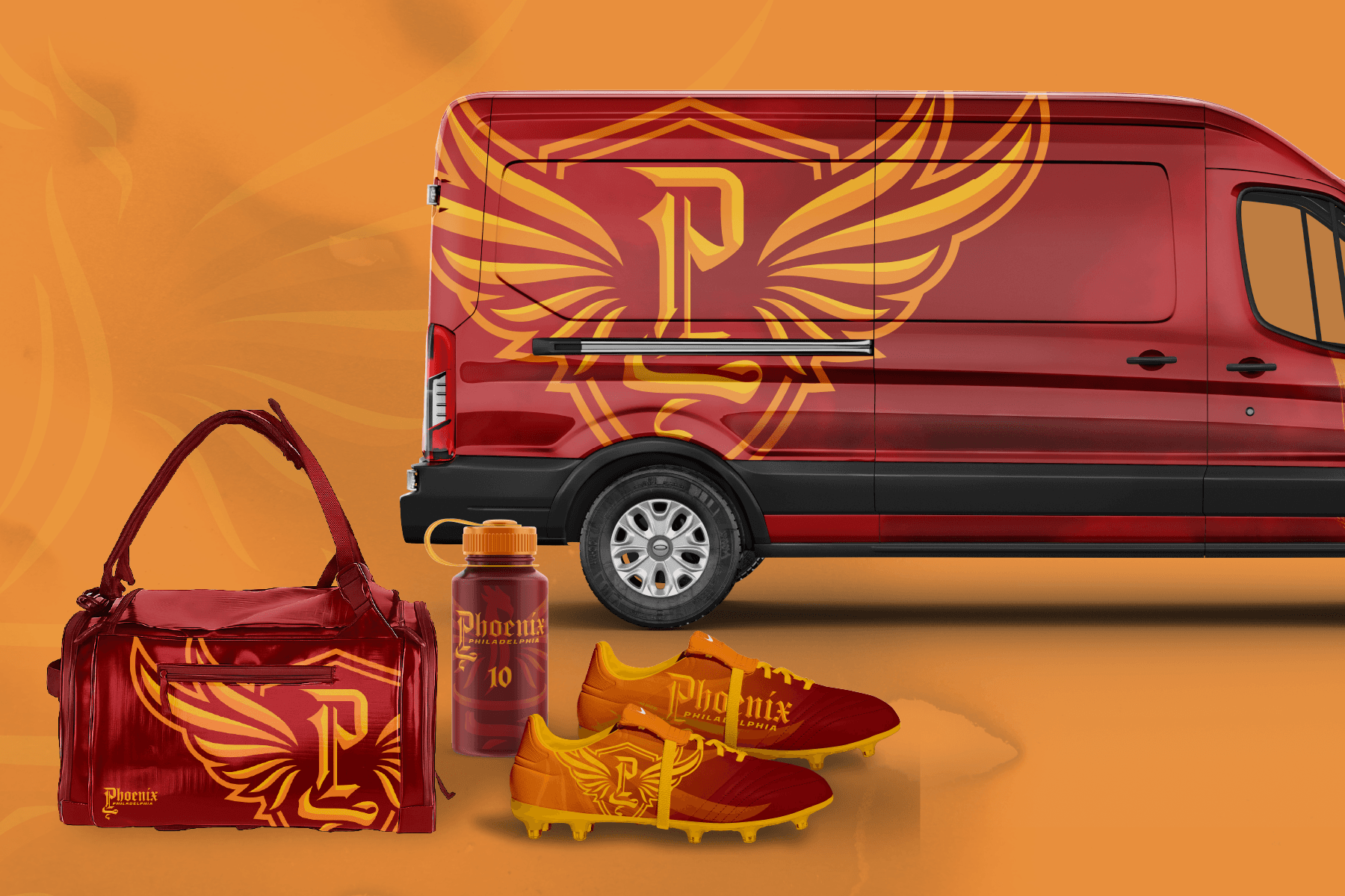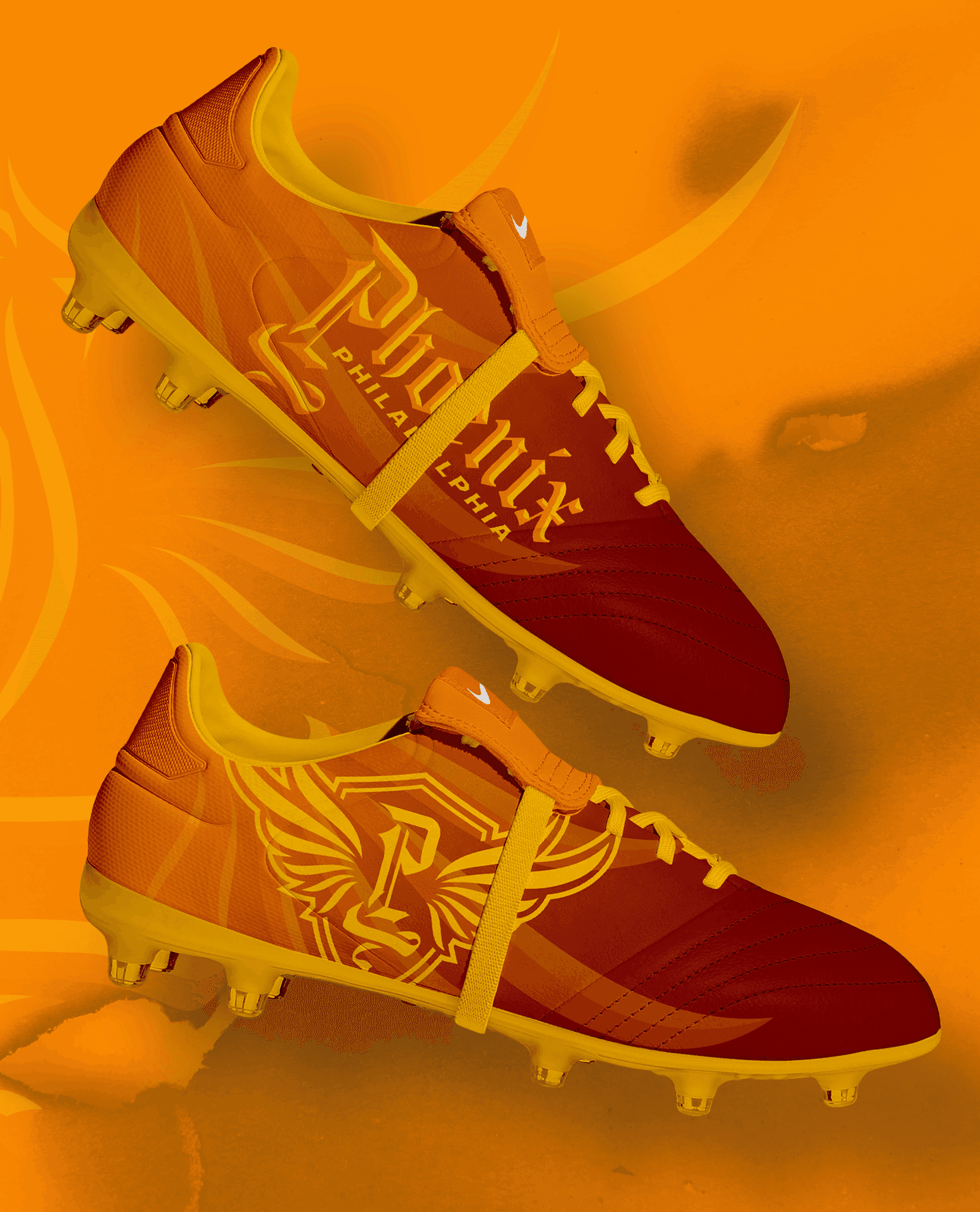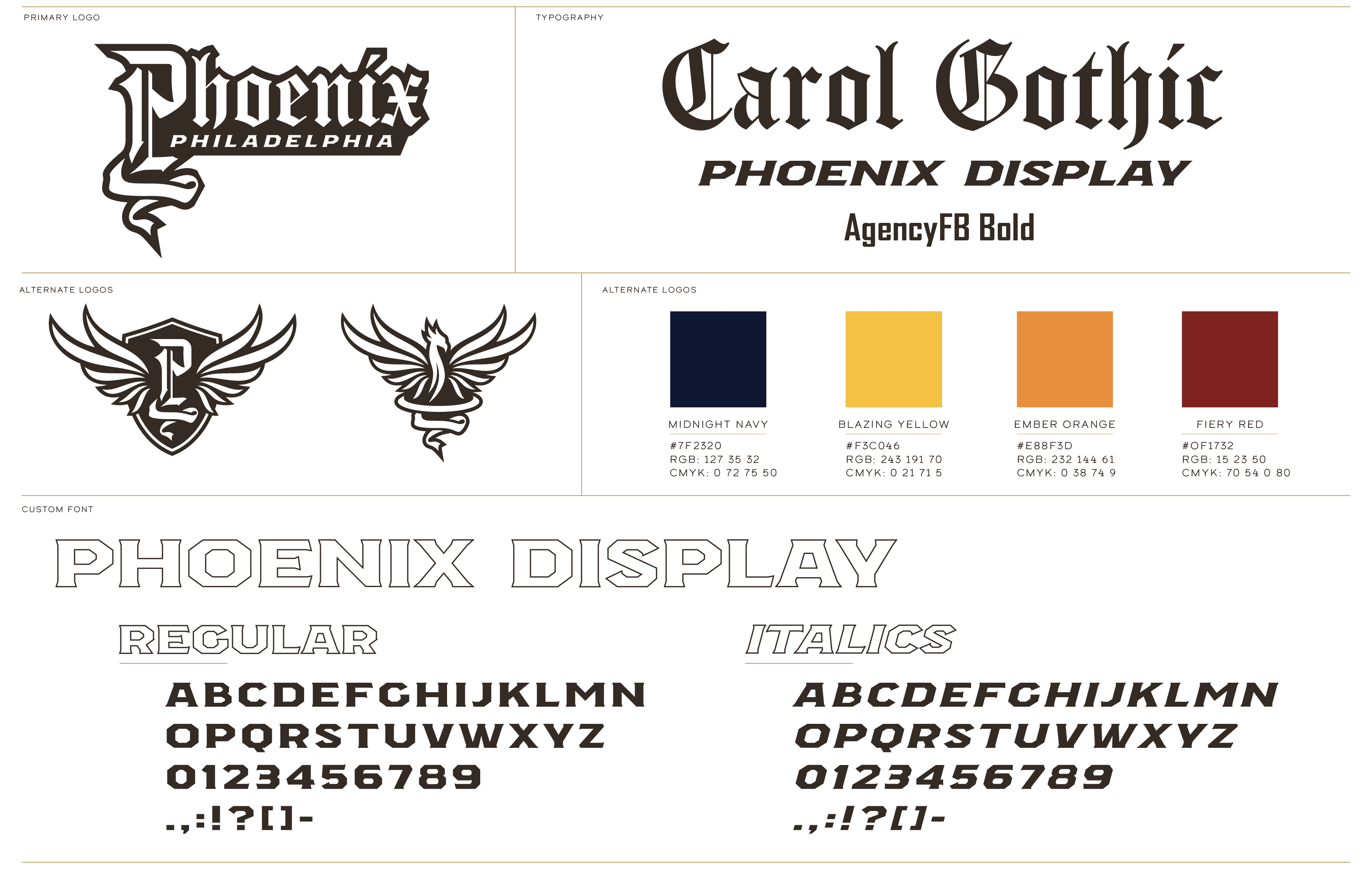 Beginning with sketches inspired by sharp calligraphy, emblematic birds, and medieval crests, this brand system embodies the sharp contrast between legacy and modernity through its gothic lettering and sleek iconography. The final system not only connects the Philadelphia Phoenix with Philadelphia's history of resilience, reinvention, and revolution, but also communicates a sense of fire, passion, and competitive intensity that reflects both the Phoenix name and the spirit of Philadelphia sports culture.