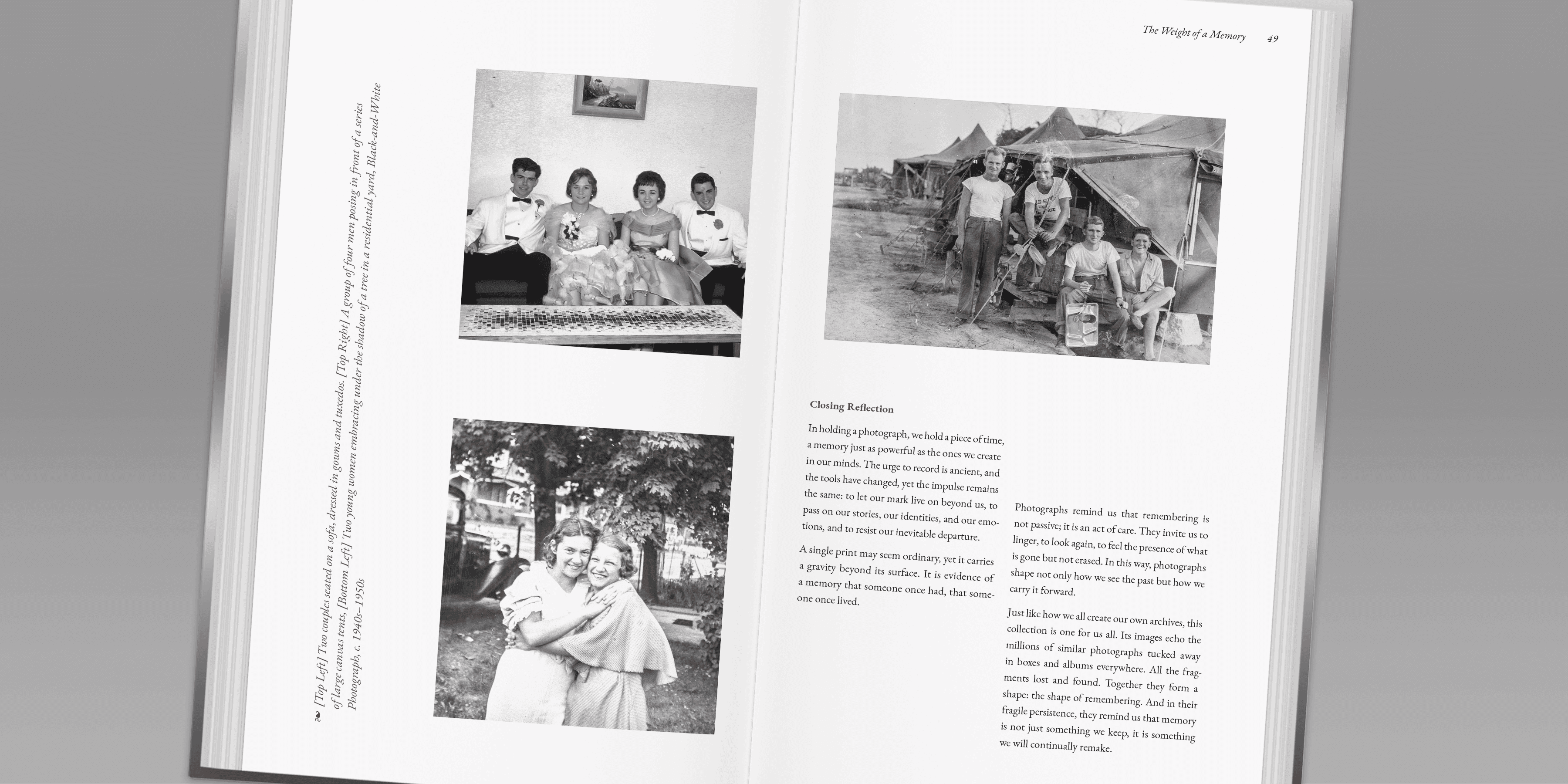 Wrapping up, this final section helps us consider photography as an act of resistance against forgetting, while acknowledging its quiet relationship with loss. Images hold onto moments that have already passed and people who may no longer be present, carrying both presence and absence at once. Through collecting, storing, and revisiting these photographs, archiving becomes an act of care and a way of honoring lived experiences, allowing memories to evolve alongside the viewer over time.