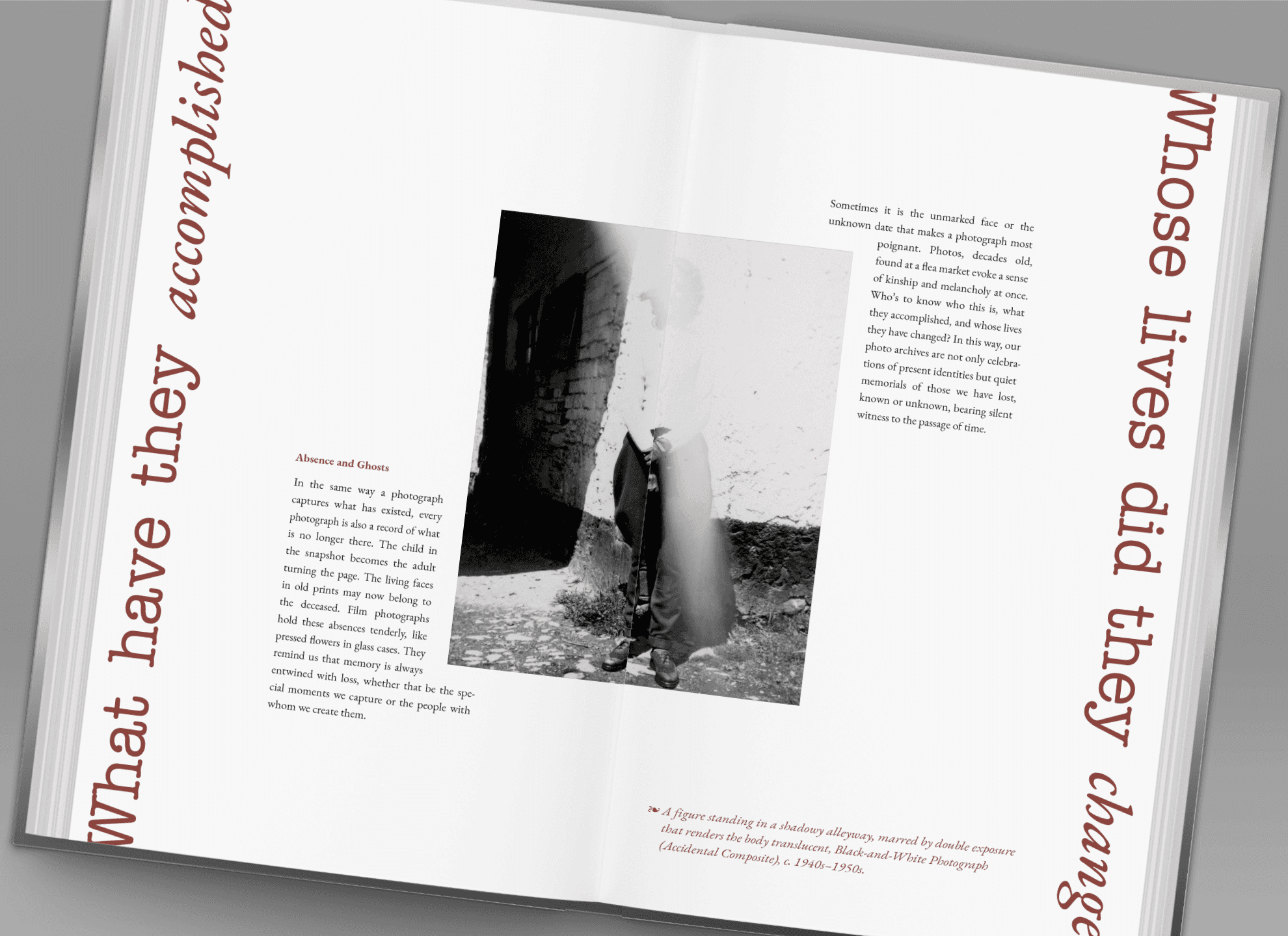 The Traces We Leave is a 49-page archival narrative, written and designed by myself and edited using AI tools, that explores the human instinct to preserve memories and moments through film photography. The narrative covers vernacular photography as a communal ritual for constructing identity and shared narratives, and highlights the physical aging of film as a mirror to the fading of memory.